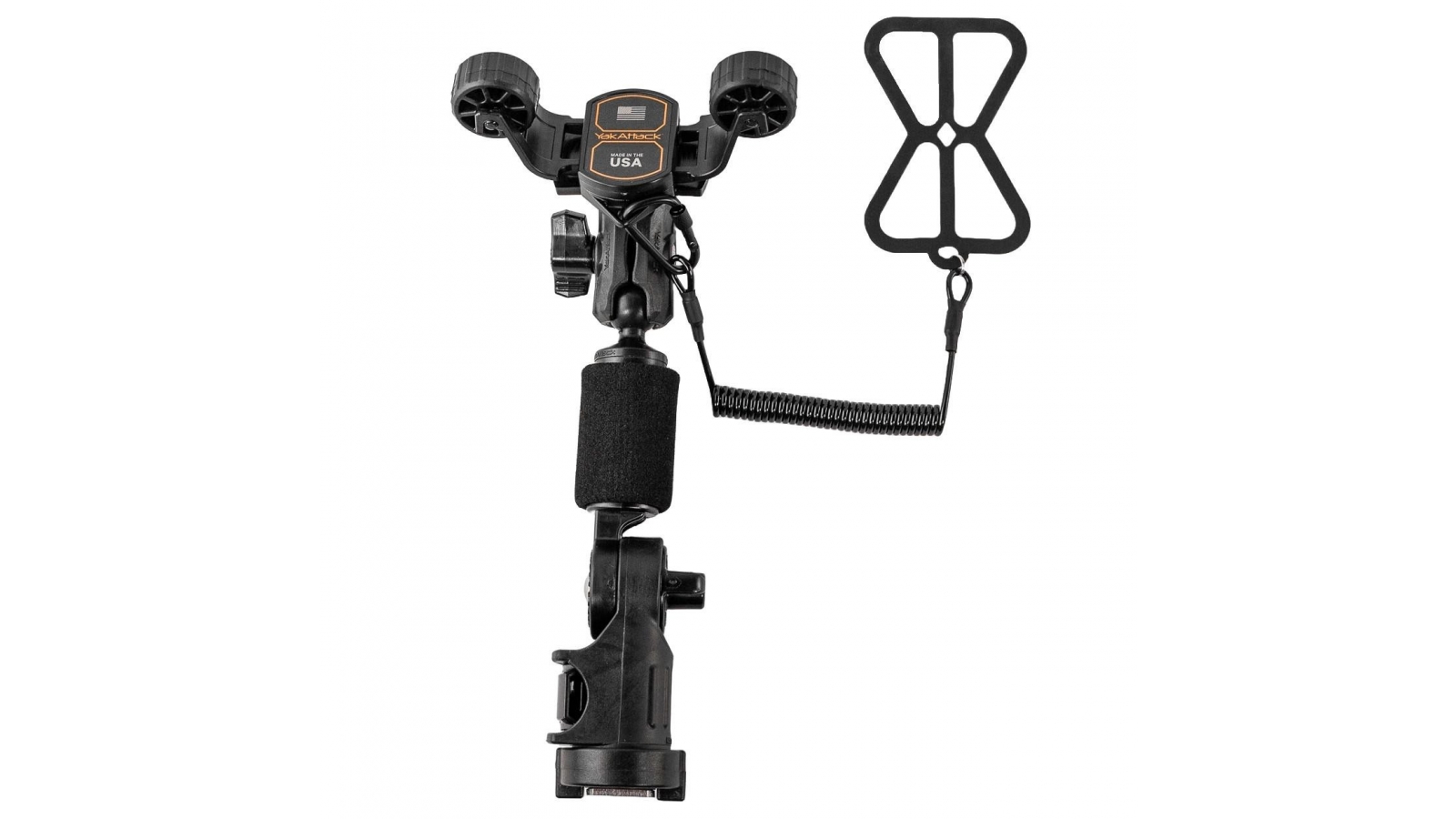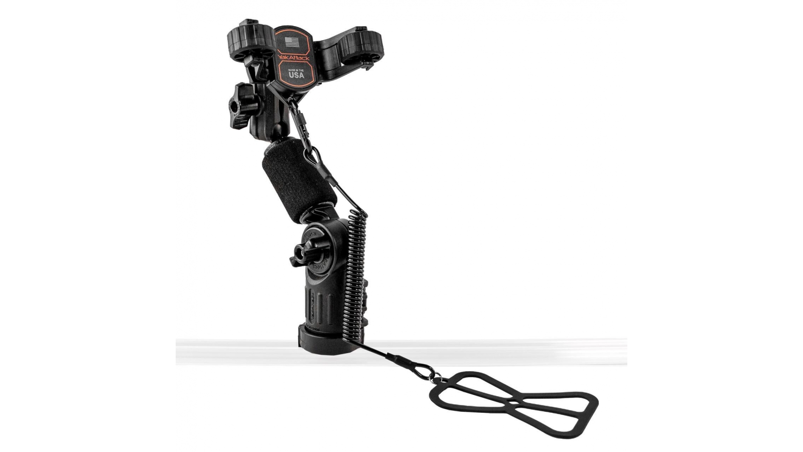 This version of the RotoGrip Phone Holder includes a Universal Smartphone Harness and Tether, LockNLoad Mounting System, and a 5” extension arm for limitless adjustments. The LockNLoad Mounting System is compatible with all YakAttack GearTrac, MightyMounts, and most other factory installed kayak track systems.