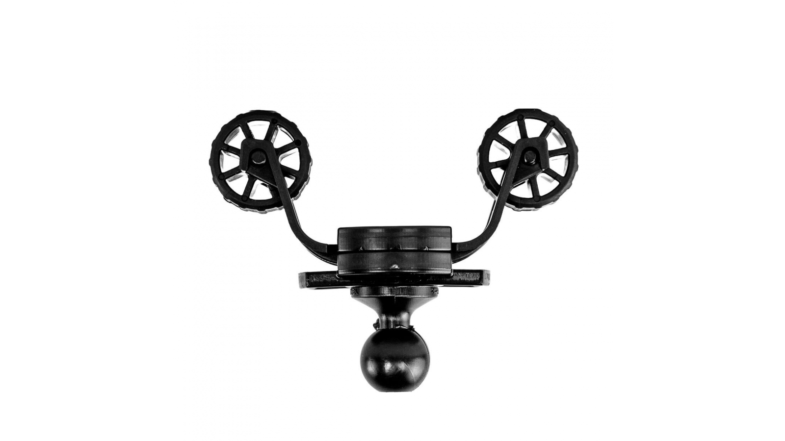 Built into the phone holder is our 1” ball system that allows for easy articulation to achieve a wide variety of positions. The 1” ball mount on the back of the phone holder is also used to adjust the width of the frame and retention wheels. Pulling against the ball releases the spring-loaded gear and allows you to twist clockwise or counter-clockwise to adjust the width to your phone. To find the correct position for your phone, adjust the arms so that your phone is securely held in place. Your phone should roll firmly into place with one-handed operation when the settings are correct.